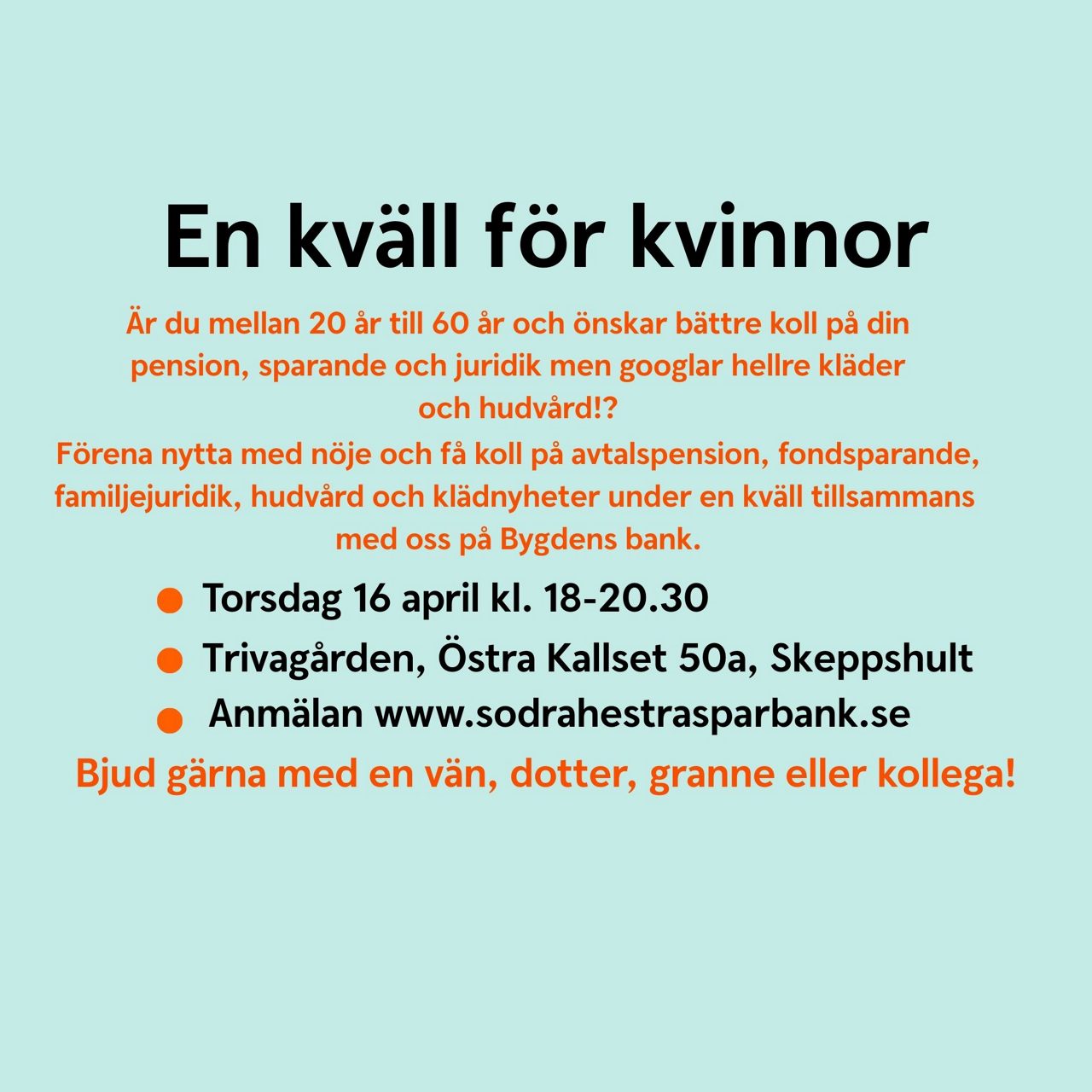 - Kvällen inleds med att lyssna på Helen Sellman från Swedbank Försäkring om avtalspensioner samt Matilda Pettersson från Swedbank Robur om fondsparande.